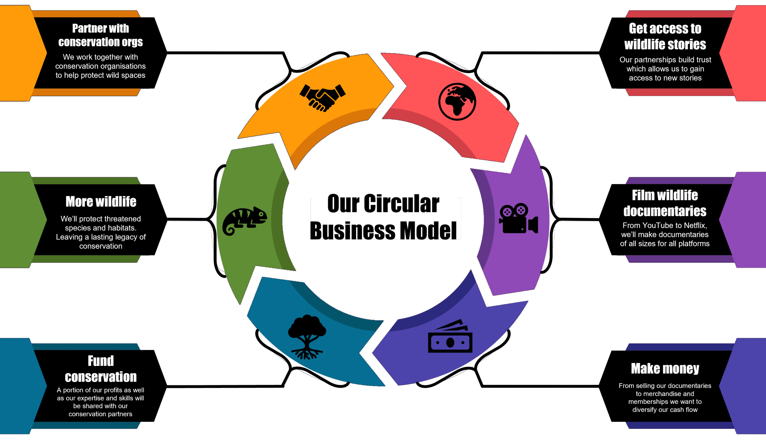 We’re adopting a new way of working. A circular business model that we are calling REGENERATIVE FILMMAKING, where every decision made from stories told, to kit used, even to where this very website is hosted, gives back to nature. Afterall, if it wasn’t for amazing conservation organisations we wouldn’t have any wildlife left to film, so it’s only right that we give back. This way we can ensure there’s more wildlife to film, allowing us to make more films, allowing us to fund more conservation, meaning there’s more wildlife to film etc. etc.